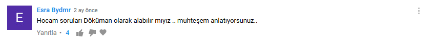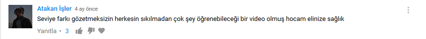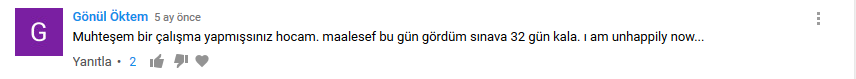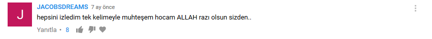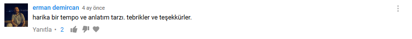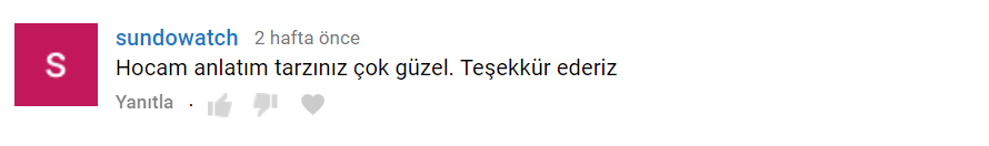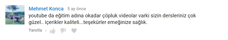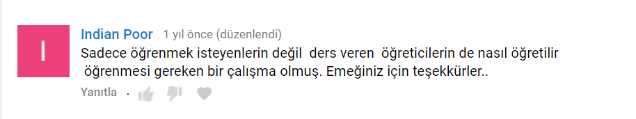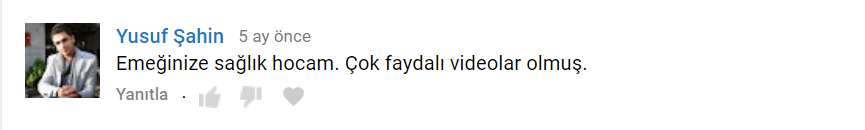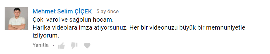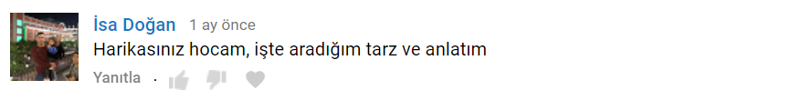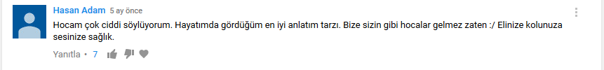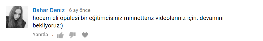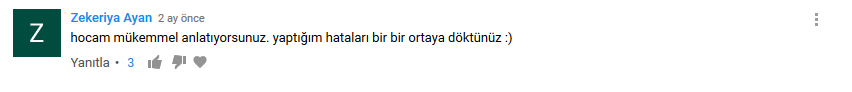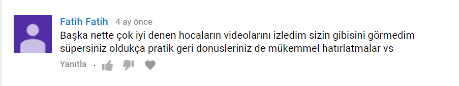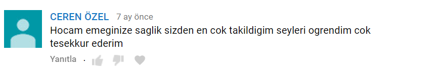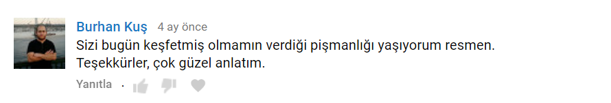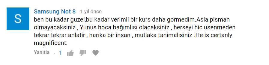 Yunus hoca ve ekibine teşekkürler:) Online paket almak isteyen arkadaşlar kesinlikle hiç tereddütsüz alabilirler. Paranızın ve emeğinizin karşılığını tam olarak alacağınıza emin olabilirsiniz.