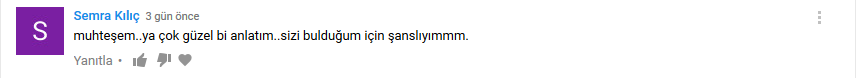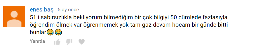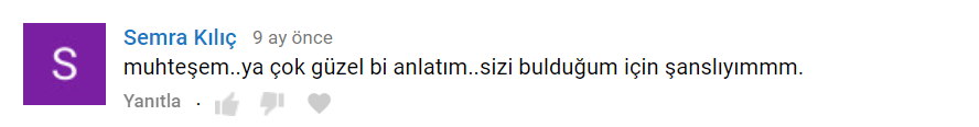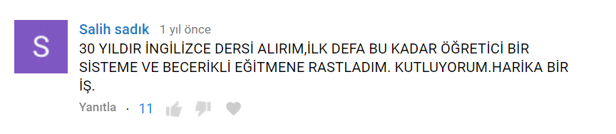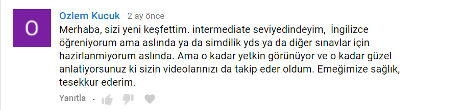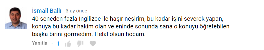 Nasıl daha evvel almadım dediğim bir kurs. İngilizceye karşı olan tüm negatif düşüncelerim yok oldu. Kendimdeki olumlu değişimin farkındayım ve bu beni çok mutlu ediyor. Dilediğim zaman ulaşabiliyorum her türlü sorunumla özel olarak ilgileniliyor. Aslında tüm bu yazdıklarımdan çok çok daha fazlası ama bunlar dile getirdiklerim vee son olarak Yunus hocam siz bir harikasınız tüm cümleleri kulağımda sizin ses tonunuzla okuyorum :)