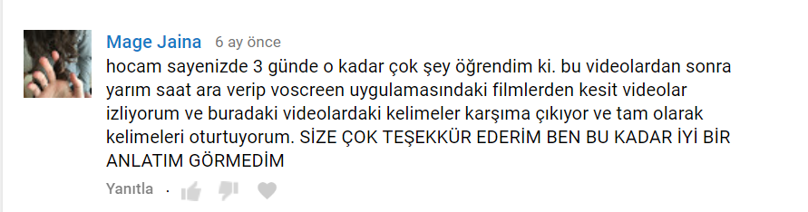 Youtubeda Yunus hocanın kelime ezber videosunu görüp bu kursu almaya karar vermiştim. Tabi ilk önce tedirgin oldum nasıl olacak diye. Ama biraz kullanınca çok doğru bir karar verdigimi anladım. Gerçekten her yönüyle şahane bir online kurs. Eğer almak isteyip de kararsız olan arkadaşlarım varsa hiç düşünmeden alsın :)